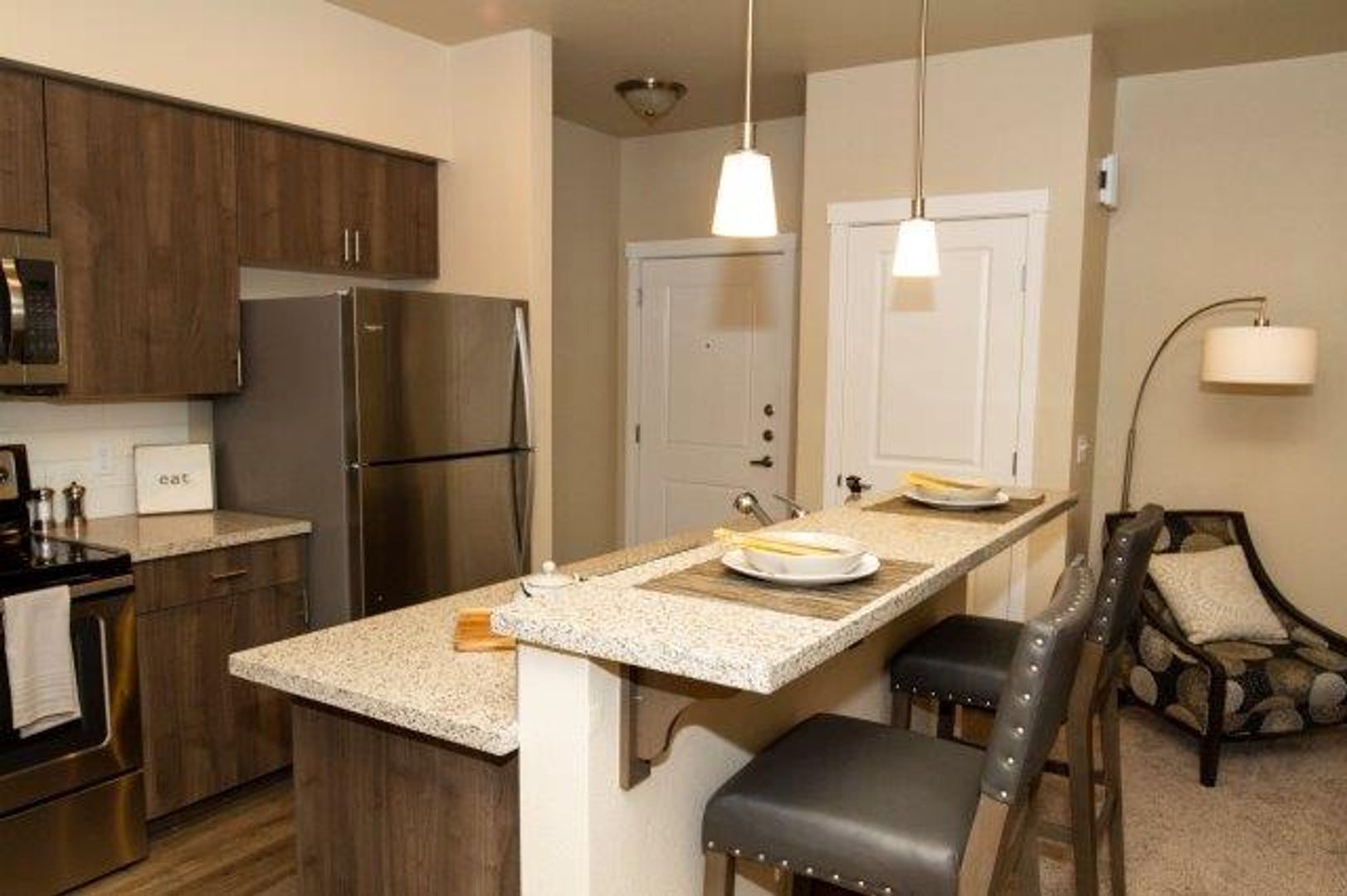 Discover this spacious and beautifully designed 3 bed, 2 bath first-floor apartment that blends comfort, convenience, and community. Enjoy modern stainless steel appliances and a large island kitchen—perfect for cooking, entertaining, and gathering with friends and family.